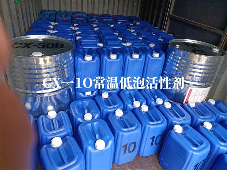 CX-10低泡活性剂不会随着温度下降而出现泡沫明显返弹,冬天低温(5度以上)喷淋脱脂槽和水洗槽不存在泡沫溢槽问题。免费试样!